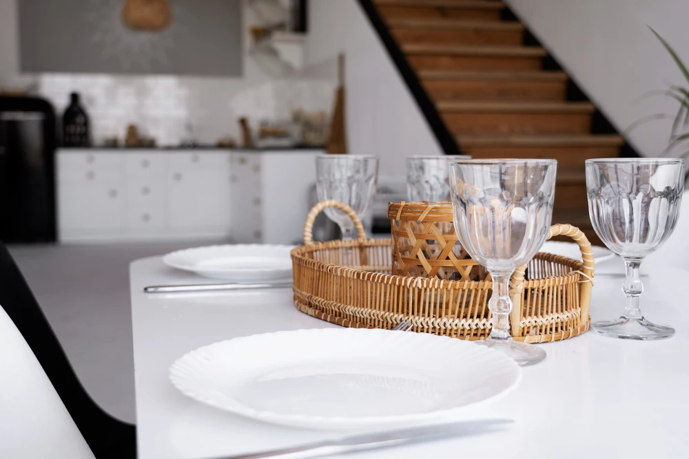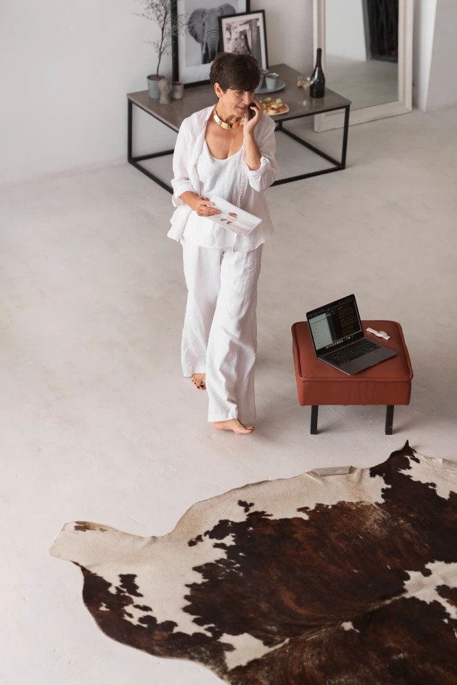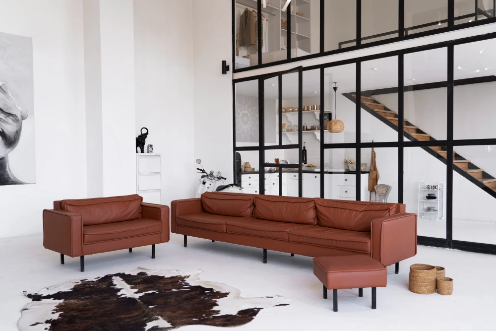 כמו: עור, סיבי עץ ואריגים טבעיים, ליצירת בית שהוא גם עכשווי וגם עוטף.